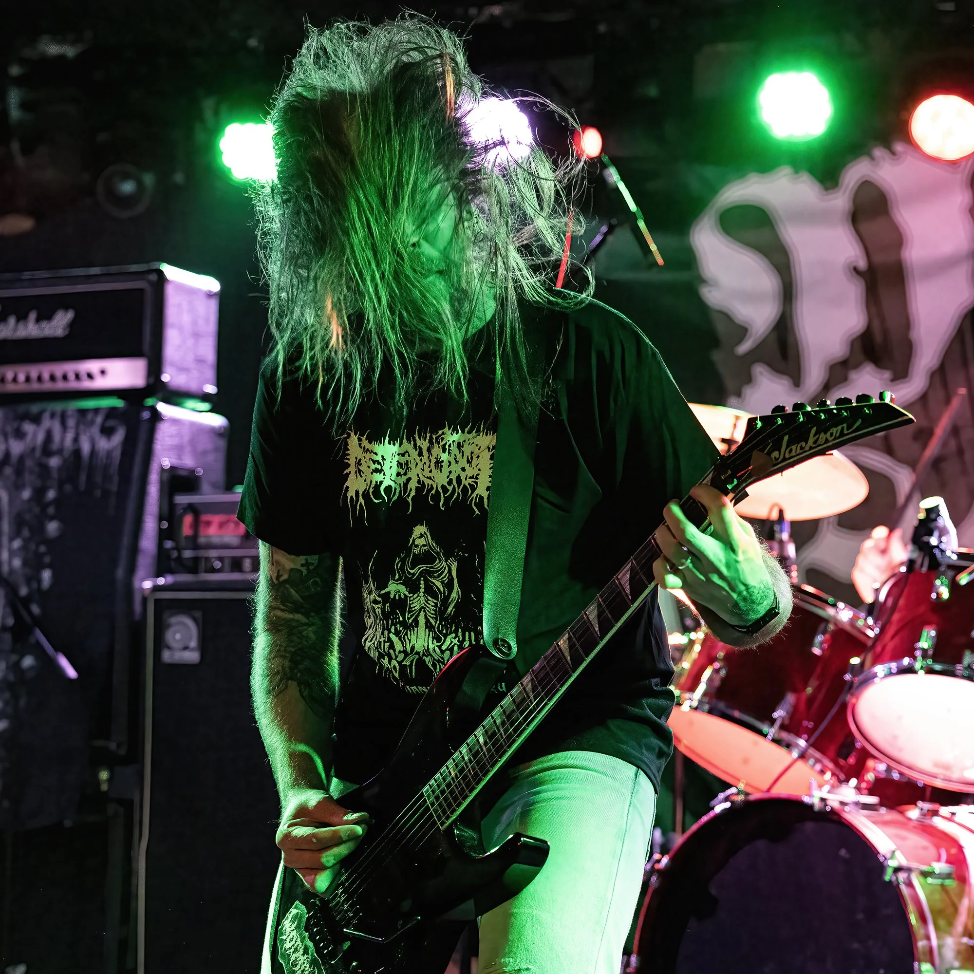 Their sound shakes the room. Cavernous Death Metal with infectious grooves swirl and stomp with an absurd amount of reverb. Beneath the murk is a solid structure to hold everything together. Like rotting flesh hanging in clumps from a skeleton. Gross and slow moving.